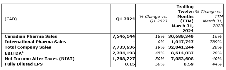 "Our Canadian pharmaceutical business got off to a fast start in Q1 2024, with 18-per-cent revenue growth over the comparative period," said Rene Goehrum, president and chief executive officer of BioSyent. "All of our Canadian pharmaceutical brands contributed to this growth during the quarter. Our three launch brands, FeraMAX Pd Maintenance 45, Inofolic and Gelclair, also contributed modest incremental growth during Q1 2024. We remain focused on continuing to grow our Canadian pharmaceutical business during the remainder of the year, with continued selling and promotional investment in our launch brands. I look forward to reporting on our progress in 2024."