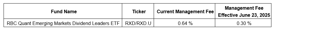 Royal Bank of Canada's RBC Global Asset Management Inc. has made a change to the investment strategies and a management fee reduction for RBC Quant Emerging Markets Dividend Leaders ETF.
