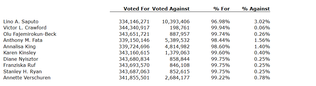 The nominees listed in the management information circular dated June 5, 2025, were elected as directors of Saputo Inc. at the annual meeting of shareholders held on Aug. 8, 2025.
