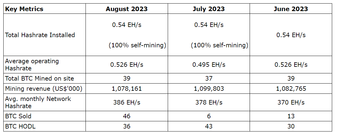 August mining update (unaudited)