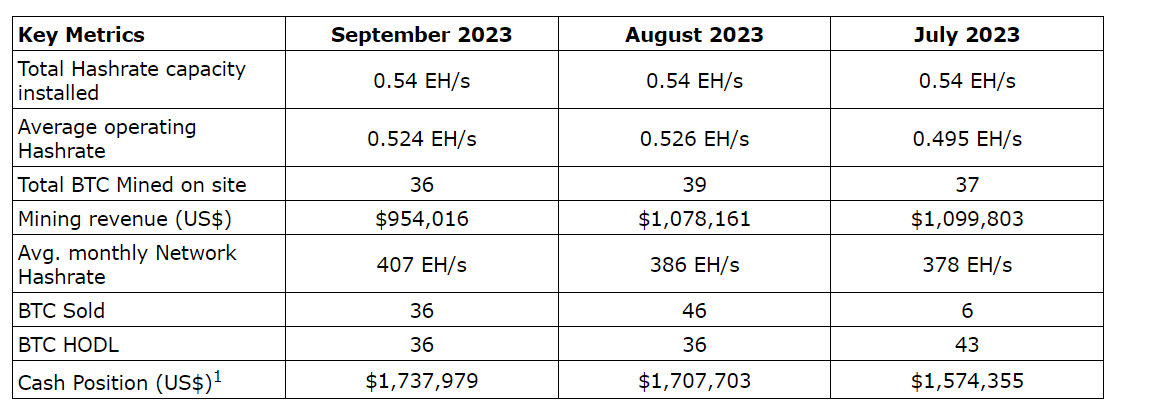 SATO TECHNOLOGIES CORP. ANNOUNCES SEPTEMBER 2023 BITCOIN MINING OPERATIONAL UPDATE