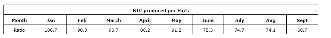 In September, the mining network hash rate increased by 5.44 per cent month over month.