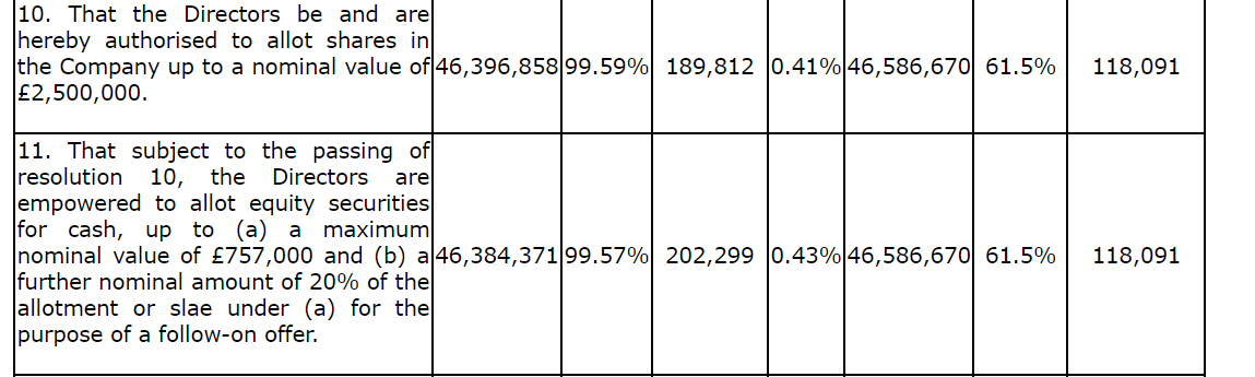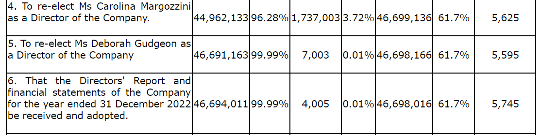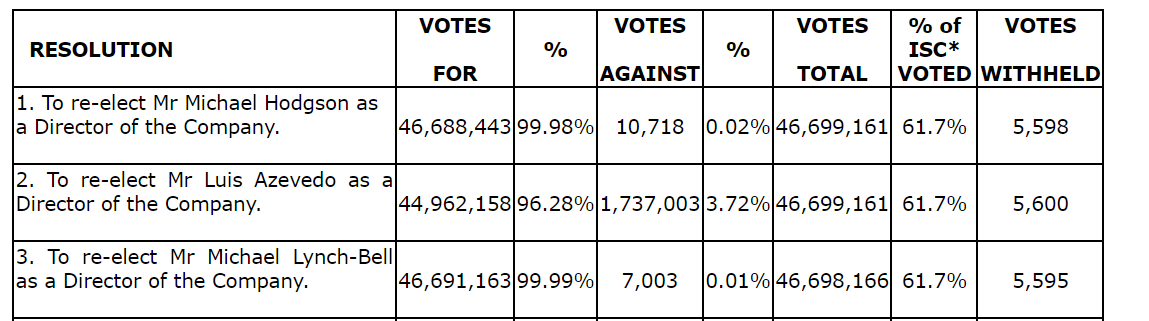 The voting was determined by a poll, and the results in respect of each resolution are provided in an attached table.