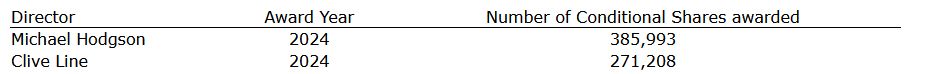 The remaining 230,818 Conditional Share Awards have been made to other employees of the Company. The number of Conditional Shares awarded was calculated by reference to the 30 day VWAP average of the Company's shares of on 30 January 2024.