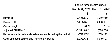 As of March 31, 2023, the company had cash of $3.3-million, as compared with $4-million on March 31, 2023.