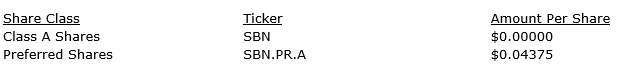 S SPLIT CORP. DECLARES MONTHLY DISTRIBUTION