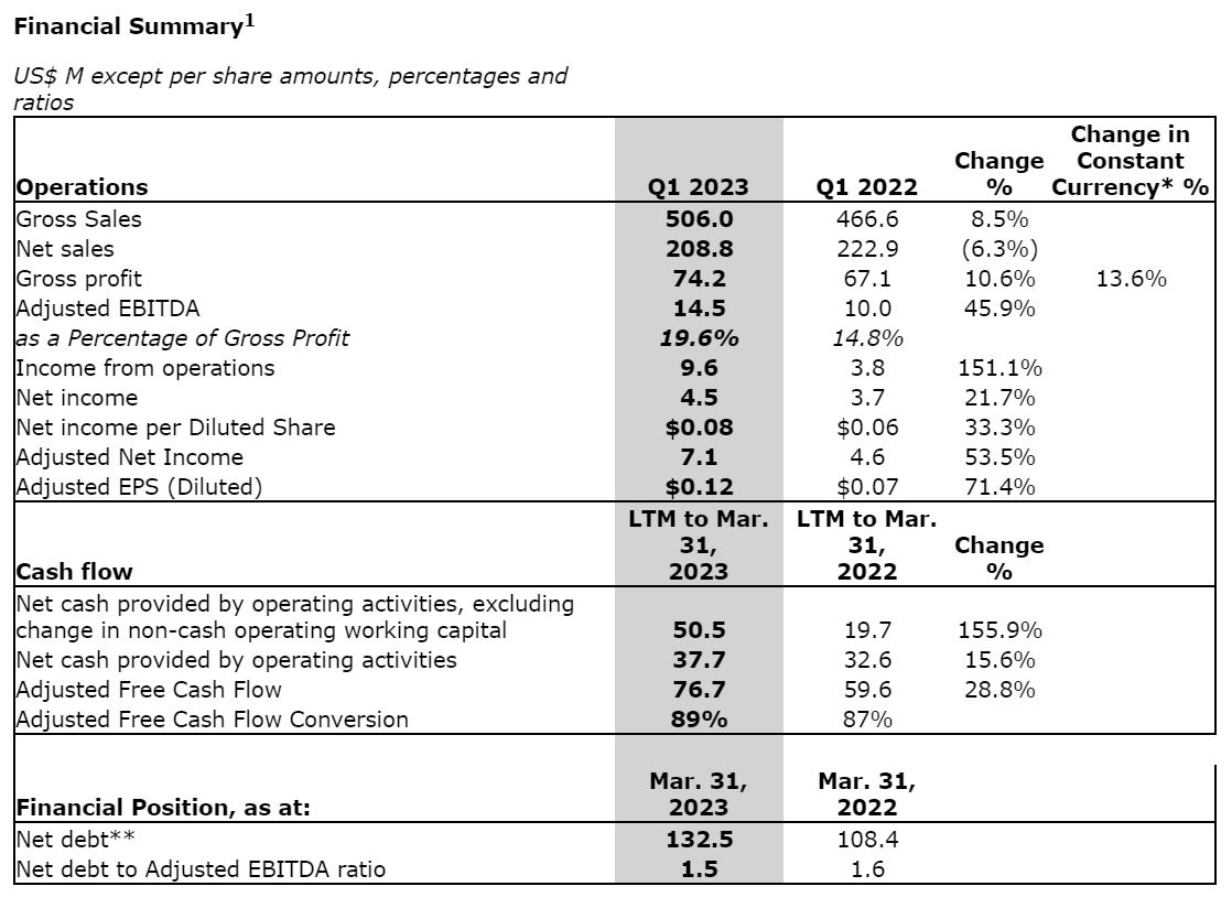 Adjusted EPS on a diluted basis increased by 71.4% to $0.12 from $0.07 in Q1 2022 due to the increase in Adjusted Net Income combined with a reduction in the total weighted average number of common shares of the Company (each, a "Common Share") outstanding, reflecting the Company's repurchase and cancellation of Common Shares under its Normal Course Issuer Bid ("NCIB") over the trailing twelve months ("LTM").