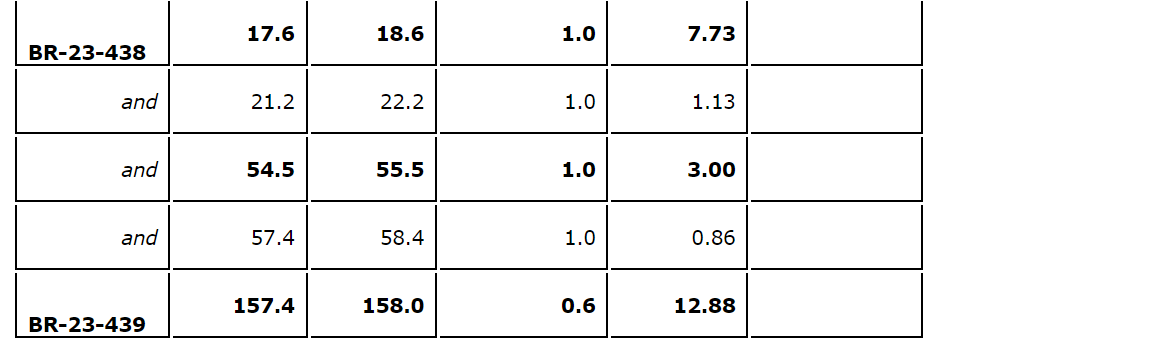 - 7.73 g/t gold over one metre (17.6 metres to 18.6 metres) in hole BR-23-438;