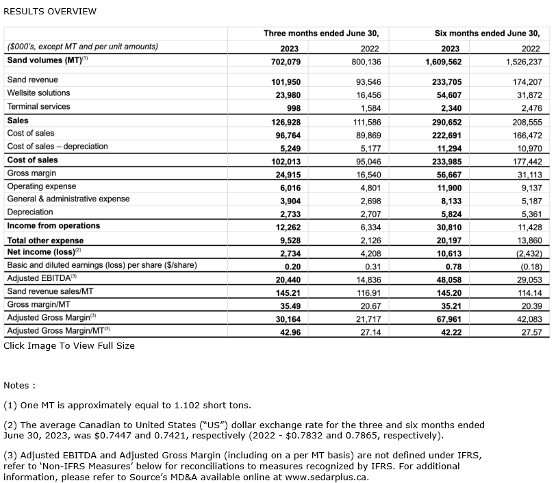 Despite a challenging operating environment impacted by wildfires, floods and rail outages, Source recorded a strong quarter and achieved the following key highlights during the second quarter of 2023: