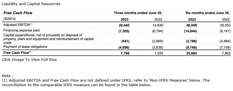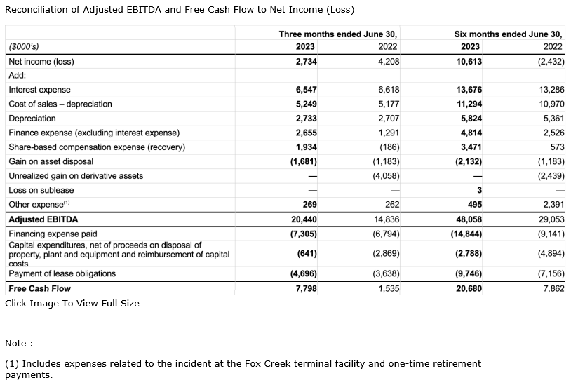 - Realized adjusted EBITDA (earnings before interest, taxes, depreciation and amortization) (1) of $20.4-million, a 38-per-cent increase from the second quarter of 2022.