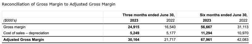 Realized gross margin of $24.9-million and adjusted gross margin (1) of $30.2-million, increases of 51 per cent and 39 per cent, respectively, when compared with the same period in 2022;
