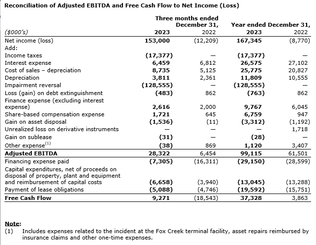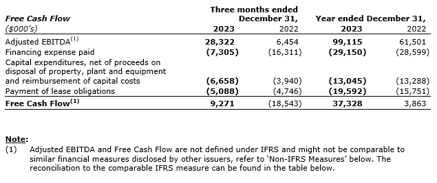 - Realized record adjusted EBITDA (earnings before interest, taxes, depreciation and amortization) (1) of $99.1-million, a $37.6-million improvement from 2022;