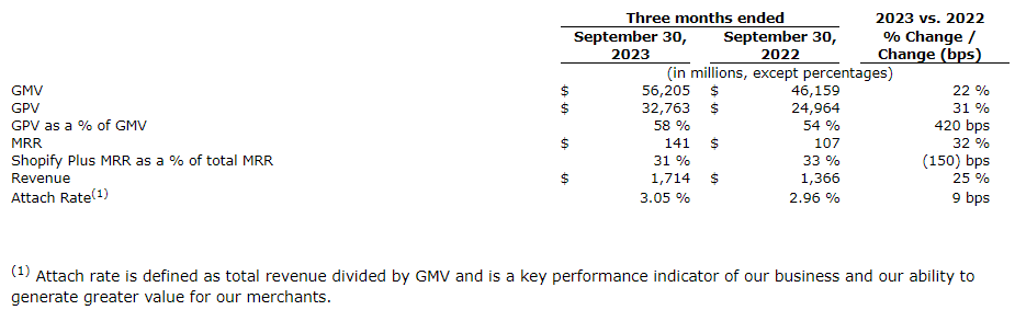 "Our third quarter results demonstrate the progress we are making to further solidify Shopify's position as the global leader in commerce," said Harley Finkelstein, president of Shopify. "Our ability to help our merchants succeed in any economic environment by delivering innovative product solutions has not only built strong trust with our merchants, but has positioned Shopify for sustained growth and profitability for the future. As we look forward to the busiest shopping season of the year, we're confident that our unified commerce platform empowers our merchants with the tools they need to seize every opportunity and achieve greater success."