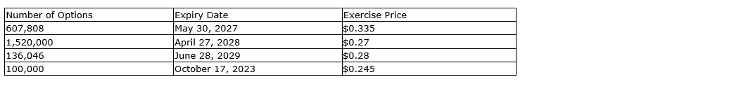Sharc International Systems Inc., effective Dec. 31, 2025, has cancelled an aggregate of 2,363,854 incentive stock options previously granted, as detailed in the attached table.