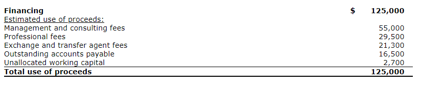 The net proceeds from the sale of the units will be used to cover general and administrative costs as detailed in the attached table.