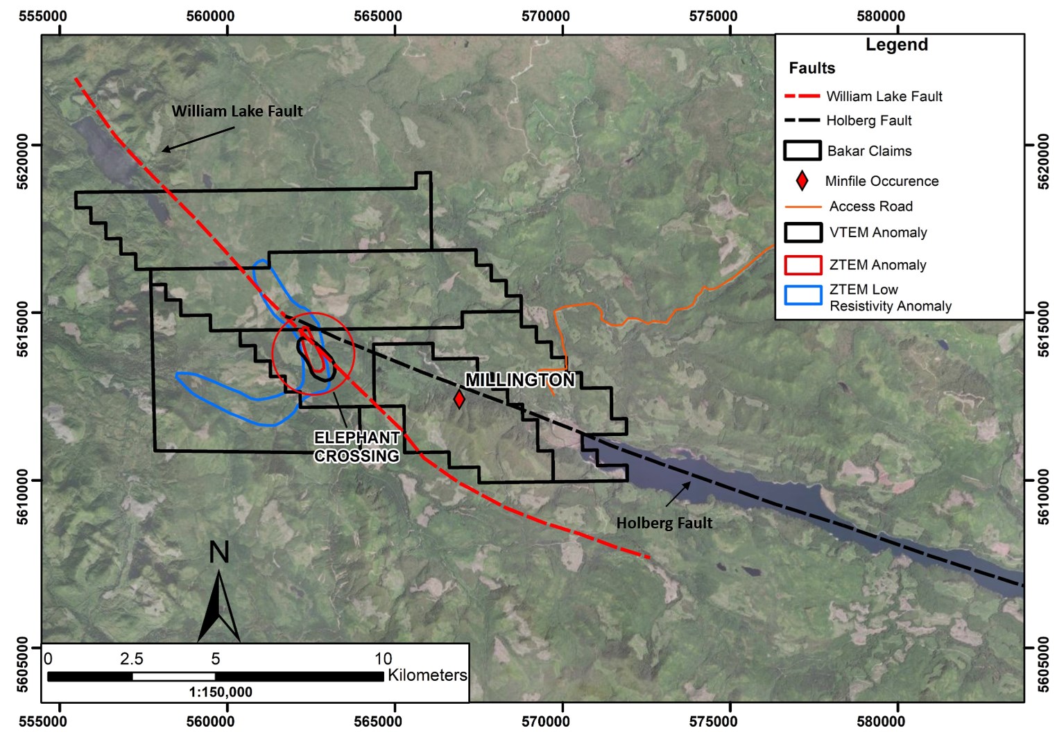 Target located within a corridor of low magnetic response correlates with the convergence of the crustal scale William Lake and Holberg Faults, which is an ideal setting for a porphyry copper mineralized system.