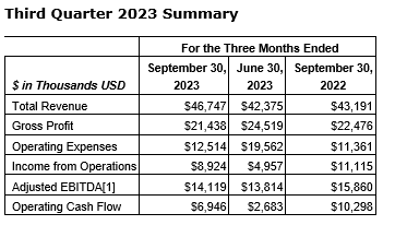 SCHWAZZE ANNOUNCES THIRD QUARTER 2023 FINANCIAL RESULTS
