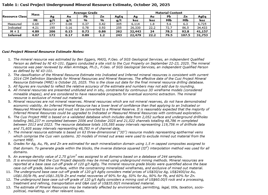 Silverco Mining Ltd. has filed an independent technical report, entitled "Mineral Resource Estimate for the Cusi Ag-Au-Pb-Zn Project, Chihuahua State, Mexico," dated Jan. 14, 2026, with an effective date of Oct. 20, 2025.