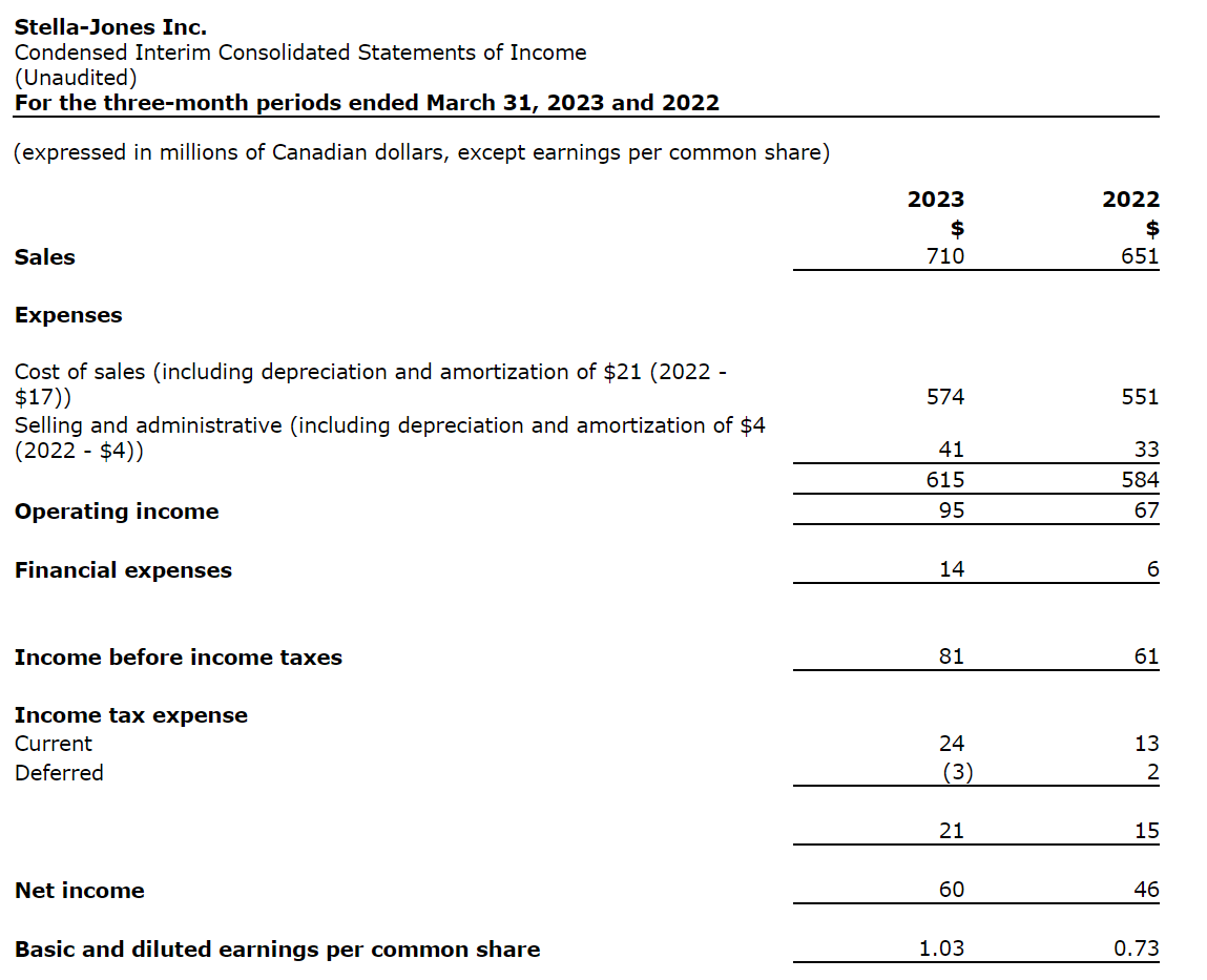 Stella-Jones Inc. has released financial results for its first quarter ended March 31, 2023.