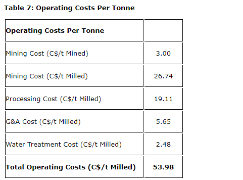 The 2023 DFS includes a new operating cost category for water treatment, which is estimated at $2.48 (Canadian)/t milled, and includes labour, consumables, power and lease payments relating to the water treatment plant. Over all, site operating costs increased by 5 per cent from $51.24 (Canadian)/t milled to $53.98 (Canadian)/t milled.