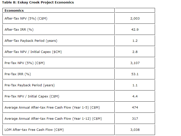 The 2023 DFS supports the robust economics of Eskay Creek as a potential tier one operation.