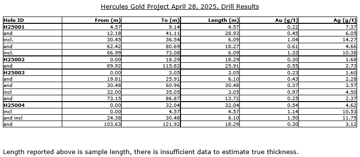 Strikepoint Gold Inc. has released initial results from drilling that took place in the spring of 2025 on its Hercules gold project located in Nevada's prolific Walker Lane.