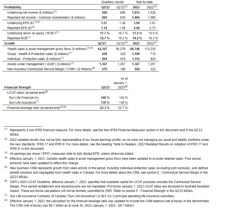 Sun Life Financial Inc. has released its results for the second quarter ended June 30, 2023.
