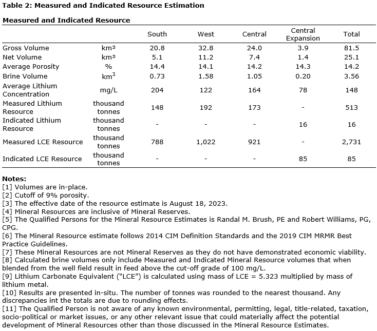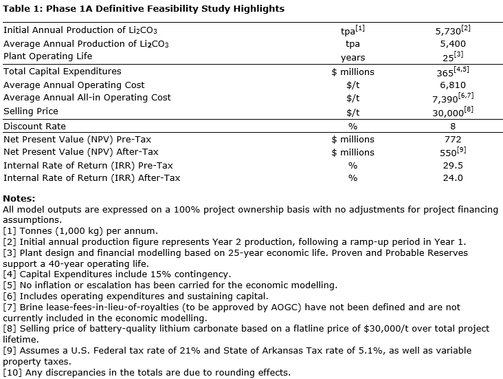The report was prepared by a multidisciplinary team of qualified persons that include geologists, reservoir engineers, civil, mining, metallurgical and chemical engineers with relevant experience in brine geology, brine resource modelling and estimation, lithium brine processing, and project development/execution. This was combined with an update of the resource assessment completed by William Cobb & Associates. A National Instrument 43-101 report is required to be filed, in conjunction with the disclosure of the study in this news release, within 45 days.