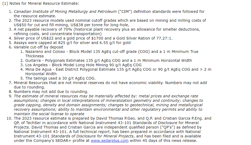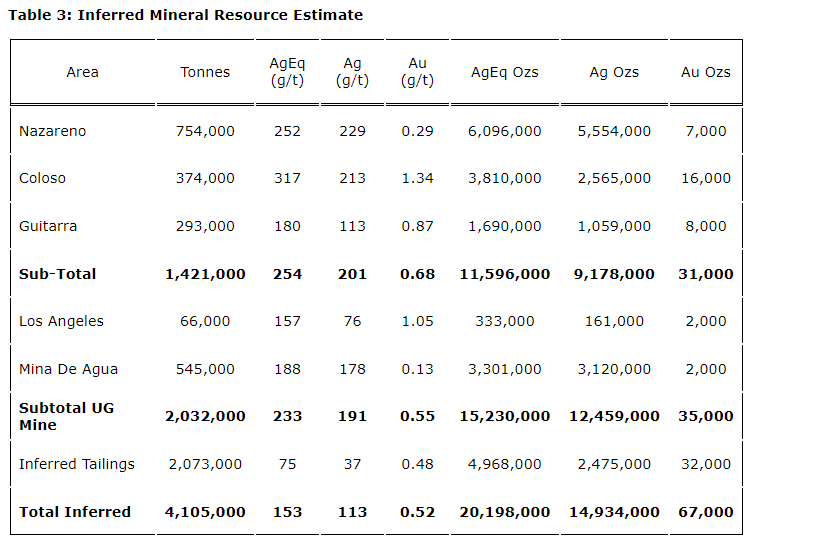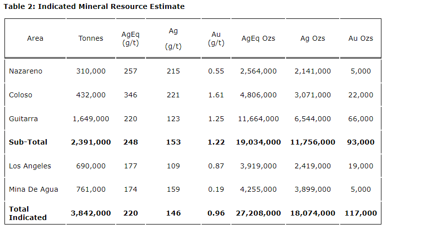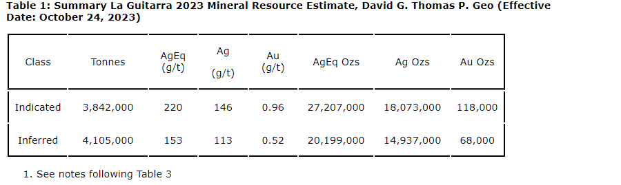 The attached tabulates the La Guitarra estimated mineral resources.
