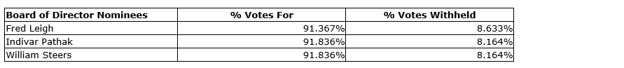 Detailed results of the vote for the election of directors held at the meeting on June 30, 2025, in Toronto, Ont., are set out in this news release.