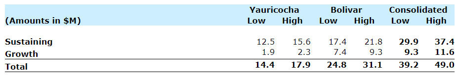 Growth capital for 2024 is expected to range between $9.3-million and $11.6-million, focusing on the new tailings dam at Bolivar.