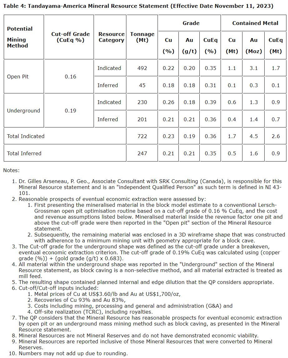 The mineral reserves have been estimated for a block caving method, and take into account the effect of mixing indicated material with dilution from low-grade or barren material originating from within the caved zone and the overlying cave backs. The mineral resources reflected in MRE No. 4 are inclusive of the mineral reserve estimate, which represents only 18 per cent of the measured and indicated resource estimate. The mining practices contemplated in this study do not compromise the potential extraction of the remaining resources not included in the current mine plan.