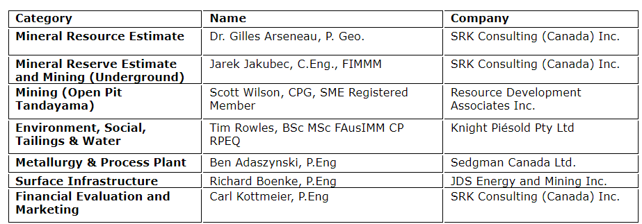 The qualified persons for the study entitled "Cascabel project, Ecuador, NI 43-101 technical report on prefeasibility study," which has an effective date of Dec. 31, 2023, are detailed in the associated table.