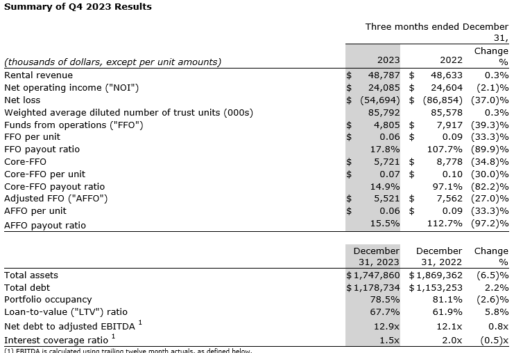 The conference call will be available by dialling 416-764-8658 or 1-888-886-7786. Additionally, the conference call will be available on simultaneous audio. A replay will be accessible until Feb. 29, 2024, on the REIT's website or by dialling 416-764-8692 or 1-877-674-7070 (access code 874565 followed by the number sign) approximately two hours after the live event.
