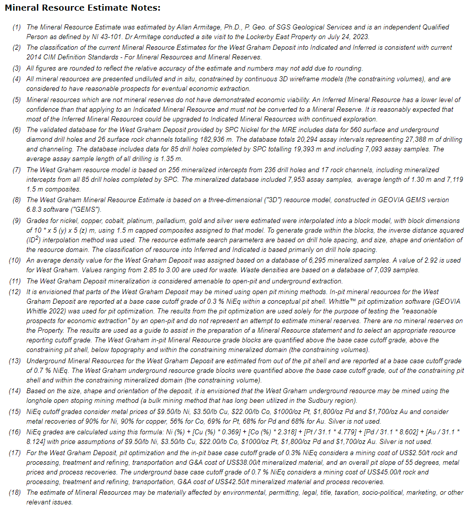 "The geometry of the mineralization at West Graham, its amenability to low-cost open-pit mining methods, the availability of local skilled labour, proximity to power, transportation and processing infrastructure, including both nickel sulphide mills and smelters, favourably positions the project for a near-term path to production. The West Graham deposit, as well as the larger Lockerby East property, retains remarkable exploration upside and our maiden mineral resource is a vital step towards unlocking and realizing that potential."