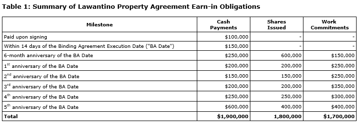 Sranan may repurchase the 2-per-cent NSR for $3.0-million (U.S.) and, upon the establishment of a minimum 750,000-ounce measured and indicated gold resource, may acquire the remaining 10-per-cent interest in the property based on an independent valuation.