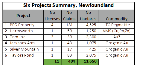 Chief executive officer Brayden Sutton states: "We are delighted with the acquisition of these Newfoundland projects. In particular the PEG property is the only recorded lithium showing in Newfoundland. The Snowshoe lithium pegmatite showing is largely unexplored with little sampling previously completed. This represents a fantastic opportunity to discover potential lithium pegmatites in the heart of Newfoundland. Additionally, the Harmsworth show promise for VHMS potential within some of the most prospective VMS host rocks in Newfoundland."