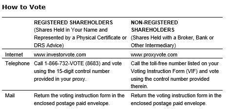 Shareholders who have questions about the meeting or require assistance in voting may contact the Company's proxy solicitation agent.