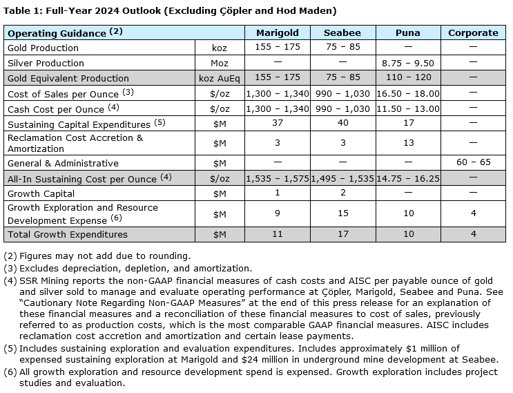 SSR MINING REPORTS FOURTH QUARTER AND FULL-YEAR 2023 RESULTS