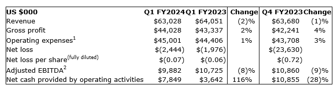 SANGOMA ANNOUNCES FIRST QUARTER FISCAL 2024 RESULTS