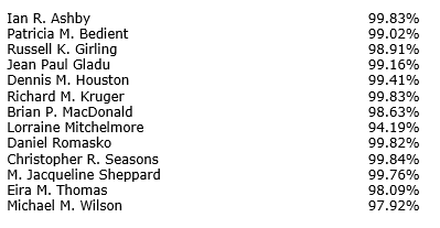 Shareholders elected 13 board members (12 of whom are independent), with shares represented at the meeting voting in favour of individual directors, as shown in the attached table.