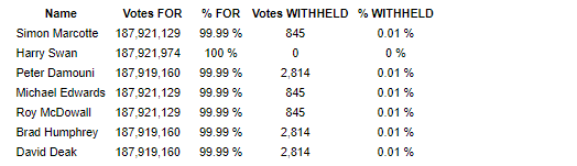 Black Swan Graphene Inc. has released the voting results from its annual general meeting of shareholders held on Nov. 27, 2023. Shareholders holding 188,634,887 shares or 62.52 per cent of the outstanding shares of the company were represented in person or by proxy at the meeting and voted in favour of all matters brought before the meeting.
