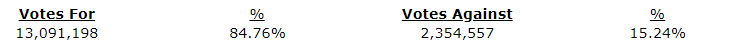 The ordinary resolution to approve fixing the number of directors to be elected at the meeting at six was approved at the meeting as shown in the attached table.