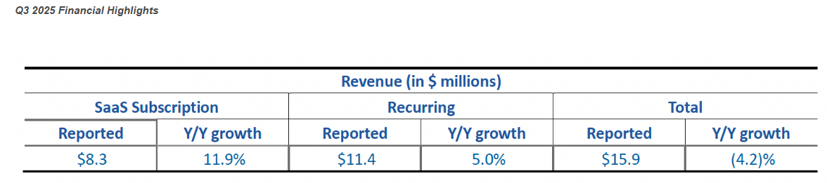 SaaS (software-as-a-service) ARR (annual recurring revenue) up 15 per cent year over year to $33.6-million;