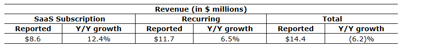 SaaS (software-as-a-service) ARR (annual recurring revenue) up 9 per cent Y/Y (year over year) to $33.8-million;