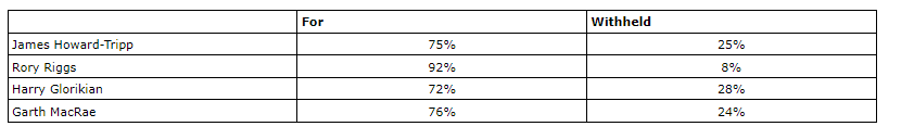 Shareholders also voted in favour of the following matters:
