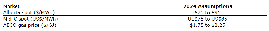 Alberta spot price sensitivity: a plus/minus $1 per MWh change in spot price is expected to have a plus/minus $3-million impact on adjusted EBITDA for 2024.