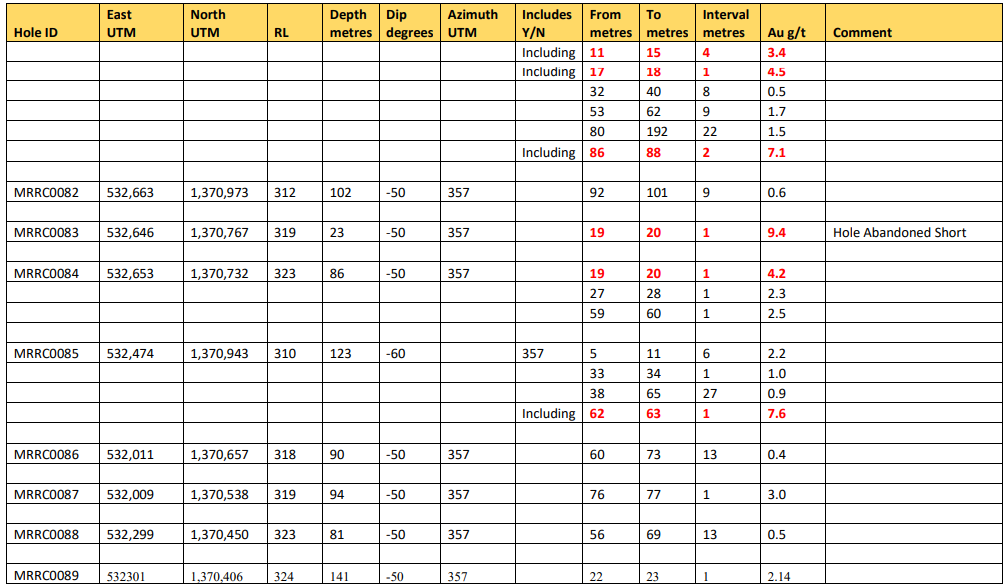 The headlined shallow drill intercepts (almost all above 60 m vertical depth) together with recently announced (March 7, 2023) saprolite auger results and extensive bedrock artisanal workings demonstrate the excellent potential for K4 North prospect to host a very substantial gold deposit, amenable to open-pit mining. The potential for the prospect to also host significant higher-grade pods, as evidenced by the numerous over-four-gram-per-tonne (g/t) drill intercepts over widths of three m to 12 m