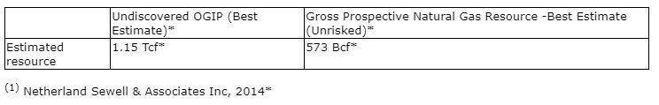 As previously detailed in the company's press release of April 28, 2022, the Vranino licence block is 98,205 acres (397 square kilometres) with third party resource estimates as shown in the attached table.