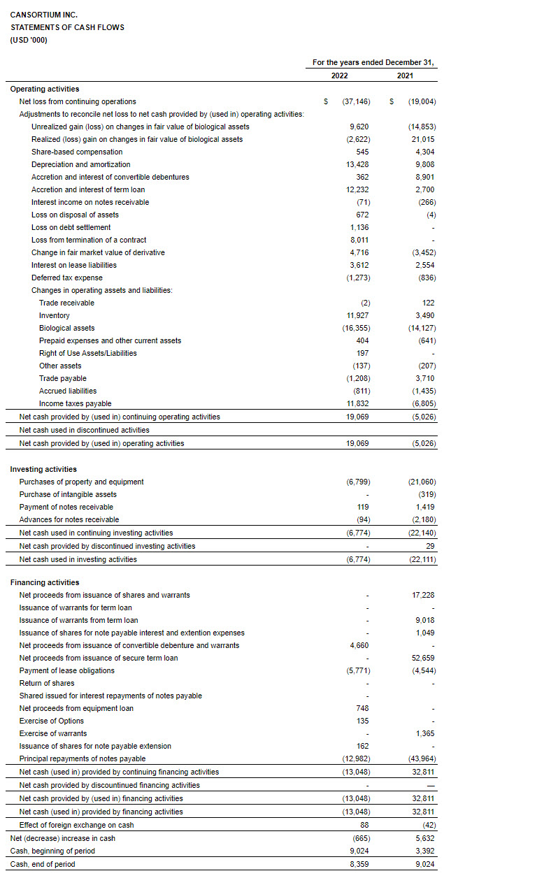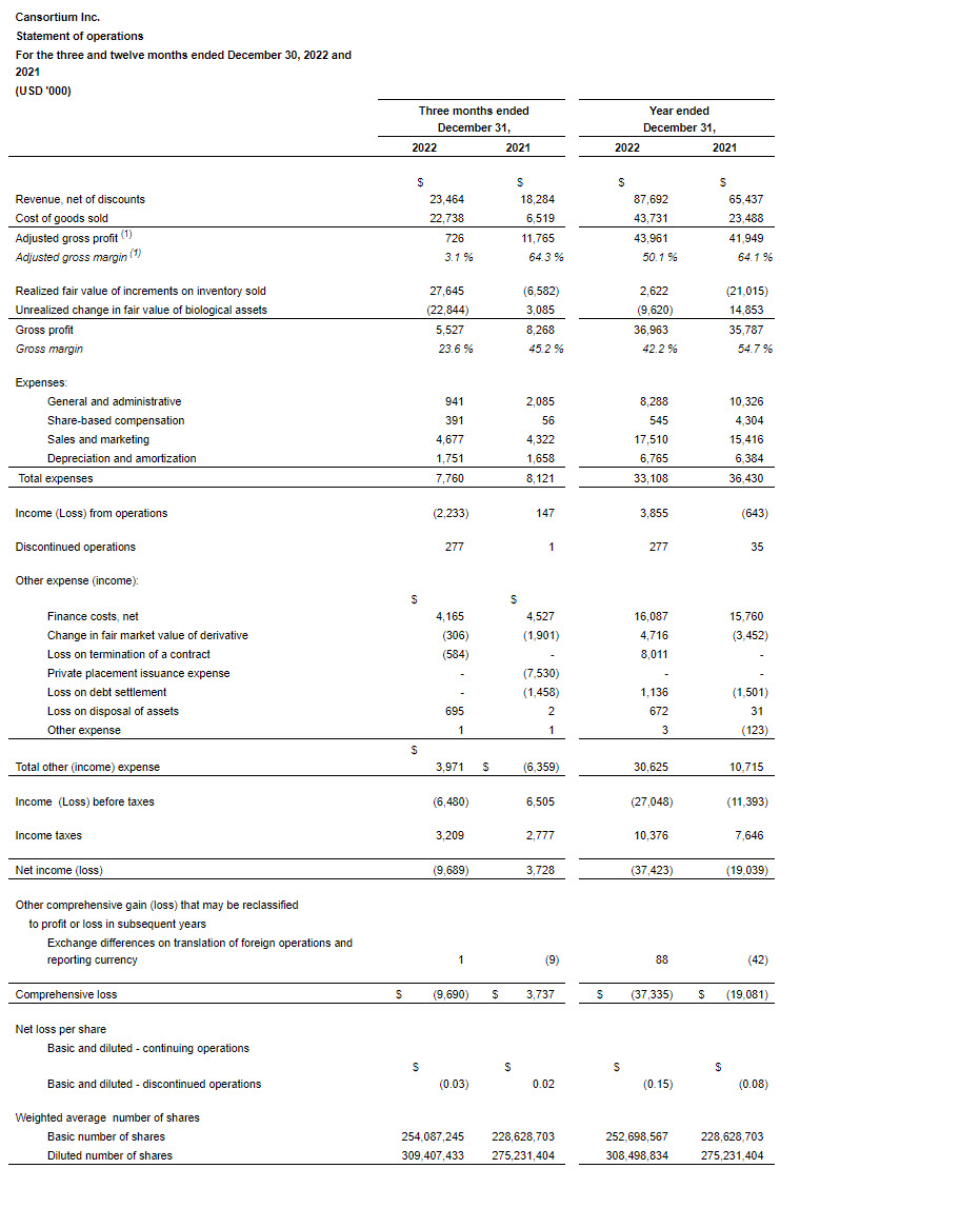 CANSORTIUM REPORTS FOURTH QUARTER AND FULL YEAR 2022 RESULTS
